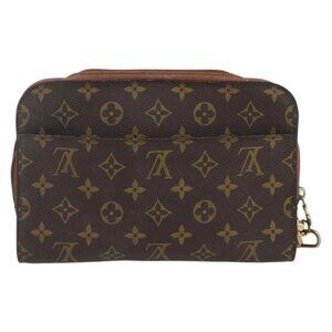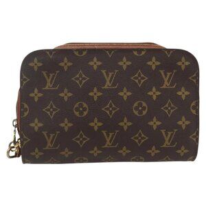 Louis Vuitton clutch, LV wristlet, Louis Vuitton pouch, designer clutch bag, LV monogram bag, vintage Louis Vuitton, luxury clutch, LV cosmetic pouch, Louis Vuitton Orsay, LV brown monogram bag.