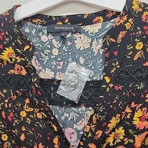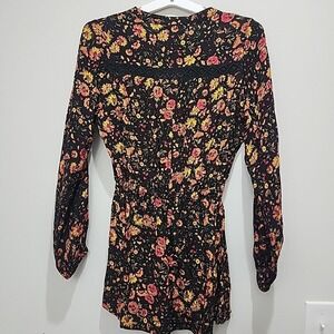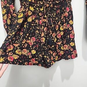 NWT Oliveaceous Floral Long Sleeve Romper Boho Chic Black Shorts Jumper Size S