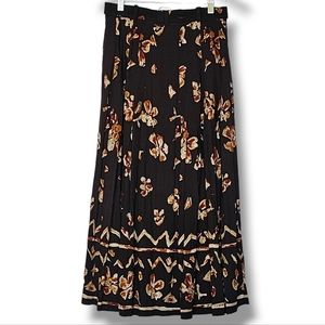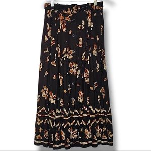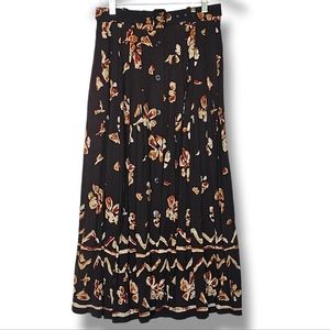 Together Vintage Maxi Skirt Size 8 Dark Brown Floral Pleated Button Front Modest