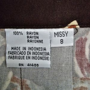 Together vintage maxi skirt in a size 8. Chocolate brown with an all over floral pattern. Pleated, button front, matching belt. Modest, full skirt. Excellent pre-owned condition with no noted flaws.