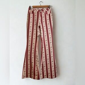 Altar'd State Red and Cream Floral Stripe Flare Pants (NWOT)