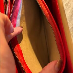 Inside there are two different compartments, one area has a wall zipper