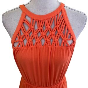 Daniel Rainn Orange Jersey Knit Halter Maxi Dress with Macrame Neckline S