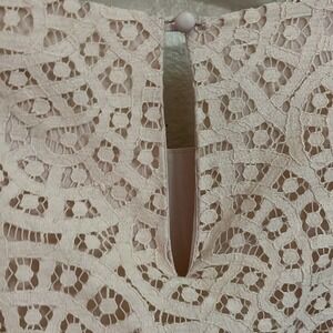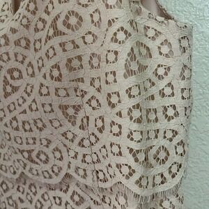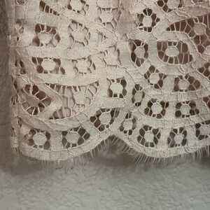 Keywords: J. Crew dress, lace dress, cocktail dress, party dress, sleeveless dress, blush dress, size 4, J Crew, lace overlay, scalloped hem, feminine dress, special occasion, geometric lace, preowned