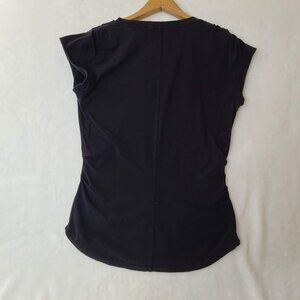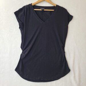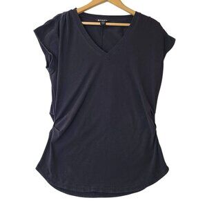 Athleta Black V-Neck Athletic Top Ruched Side Stretch Shirt Womens M