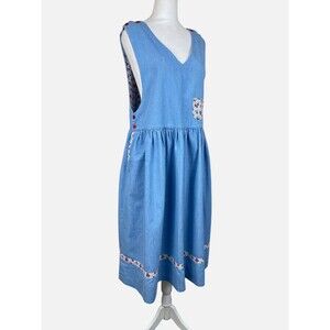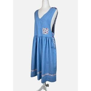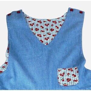 Vintage Chambray Apple Print Jumper Pinafore Dress. Size M/L (no size tag - refer to measurements).