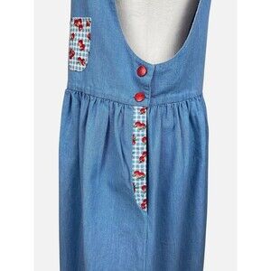 Vintage Chambray Apple Print Jumper Pinafore Dress Cottagecore Red Buttons M/L