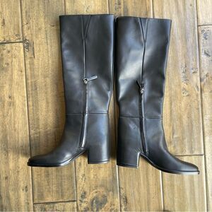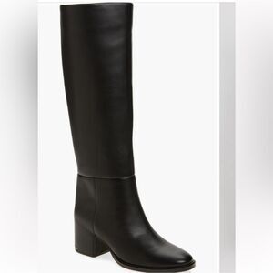 Nordstrom Hanna Boots Black Leather Knee High Tall Boot Side Zipper Size 6.5