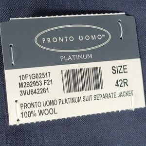 Pronto Uomo Platinum Men's Sport Coat Suit Jacket Two Button Navy Wool 42R NEW