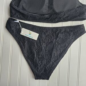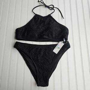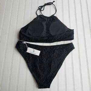 NEW Beachsissi Black Lace Halter Bikini Set Womens Large