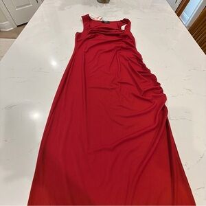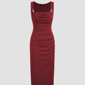 Burgundy red Ruched Square-Neck Maxi Dress