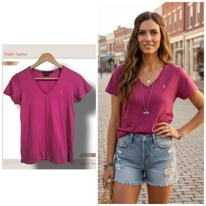 Description: ๐ฟ Ralph Lauren Sport Women's Small Magenta Pink V- Neck Tee. Very nice!