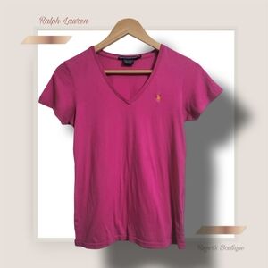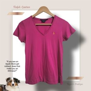 ๐ฟ Ralph Lauren Sport Women's Small Magenta Pink V- Neck Tee