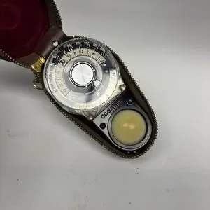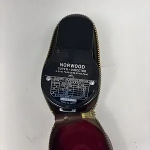 Non tested The Norwood Super Director Walz Exposure Light Meter is a reliable tool for measuring light intensity in photography and film settings. This particular model has been tested and confirmed to be in working condition, ensuring accurate results for your photography needs. It comes with a protective case for safe storage and transport, making it a convenient accessory for any photographer or filmmaker. With the trusted Norwood brand name and specific model details, you can rely on this light meter to assist in achieving optimal lighting setups for your projects.