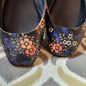 Elegant flats with colorful floral pattern. Perfect for versatile wear.