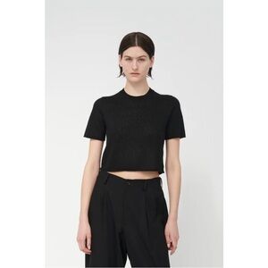 Guest in Residence Featherweight Cropped Cashmere Sweater Tee Black Size Small