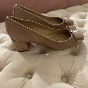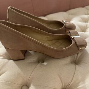MICHAEL Michael Kors Tan Suede Block Heels with Bow 7M