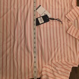 Maelreg Men's Golf Polo Shirt Medium Pink Red Stripe Performance NWT