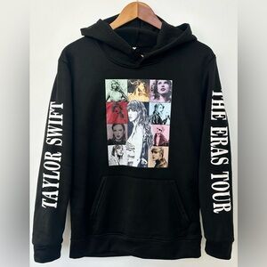 Taylor Swift Eras Tour inspired hoodie in excellent condition. Black hoodie with Eras graphic and sleeve print.