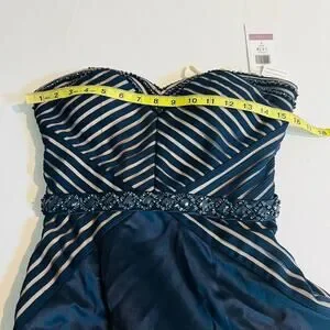 Stunning COLORS formal maxi dress in a beautiful navy blue! This dress features a detailed bodice and a flattering A-line silhouette. The strapless design adds a touch of elegance, perfect for any special occasion. Fully lined for comfort and a smooth fit. This dress is brand new with tags attached, ready to make you shine!