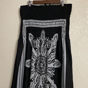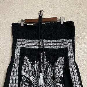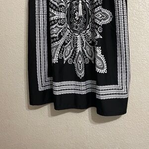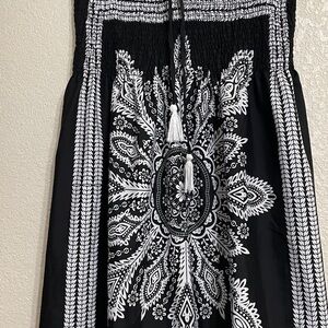 This elegant dress features a striking black and white design straps with tassels wraps around neck perfect for any occasion. The intricate pattern adds a touch of sophistication to your wardrobe. Size 3X