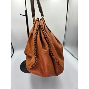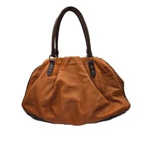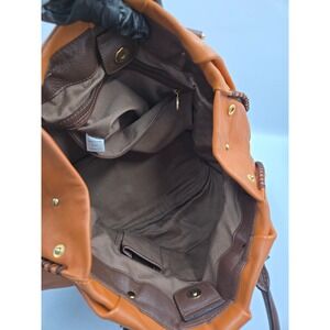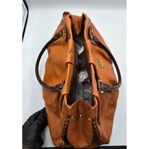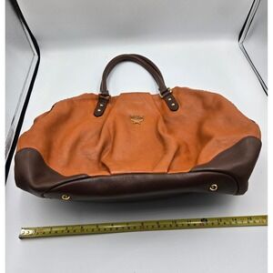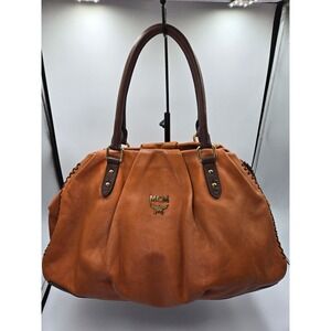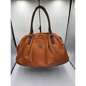 MCM Leather Satchel Handbag Purse Cognac Brown Top Handle Designer Bag