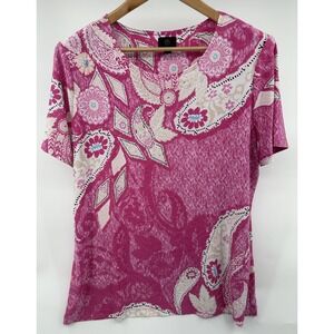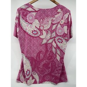 JM Collection Top XL Cute Floral Stretch Knit Short Sleeve Shirt Blouse Pink