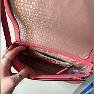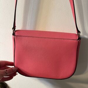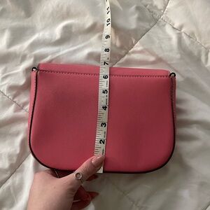 Chic pink crossbody bag. Sleek design. Perfect for any occasion.