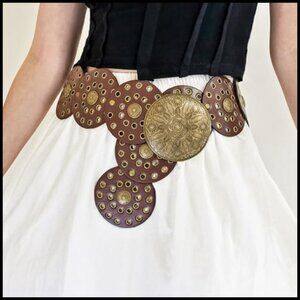 Western Disc Belt Boho Chunky Concho PU Leather Wide Belt for Dresses Jeans
