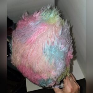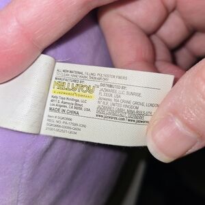Adorable plush toy with rainbow hair and purple body. Soft and cuddly.