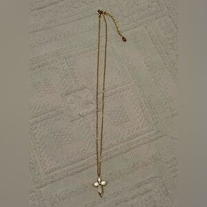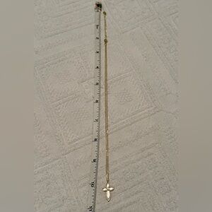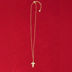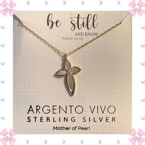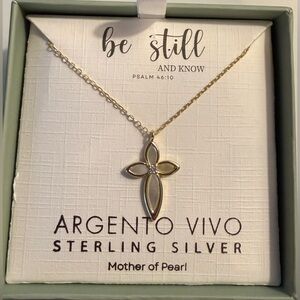 Necklace & cross pendant - gold plated over 925 silver - mother of pearl cross - 16-18”L - New w/ box - unworn. Perfect condition, but the box has some ink (?) on the top. Argento Vivo.