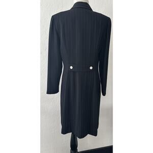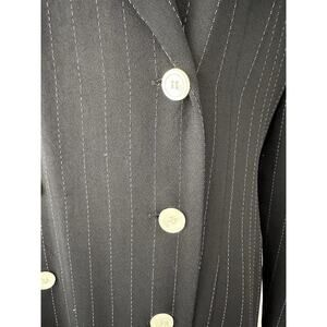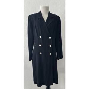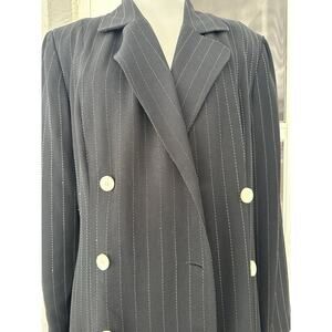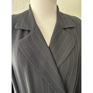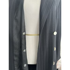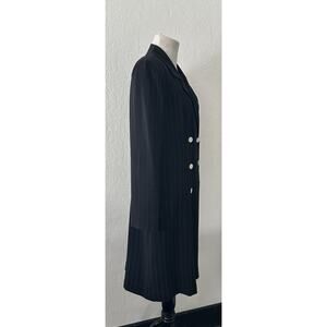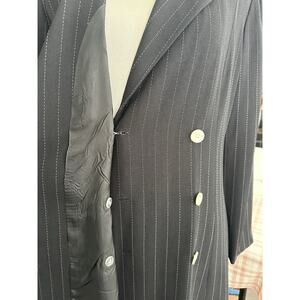 Vtg 90s Pin Stripe Power Suit Secretary Double Breasted Blazer Coat Dress Sz 10