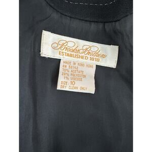 Vintage Brooks Brothers double-breasted pinstripe coat dress in classic navy with white embroidered stripes. Tailored like a blazer but cut in a dress-length silhouette, this piece embodies timeless power dressing with a flattering fitted waist and structured shoulders.