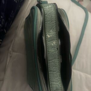 Elevate your style with this chic mint green crossbody bag. The crocodile-embossed design adds a touch of sophistication, making it perfect for any occasion.