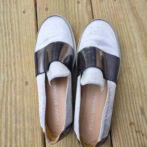 Stuart Weitzman Light Gray and Silver Slip-On Sneakers, Size 8