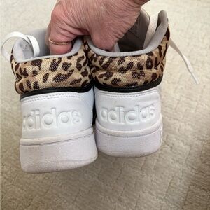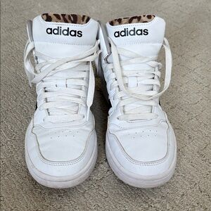 Adidas White and Black High Top Sneakers with Leopard Detail