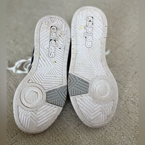 Adidas sneakers with a white base and black stripes. Features leopard print on the heel. Great condition these haven’t been worn much light dirt , These are a 6.5 but runs big fits more like a 7
