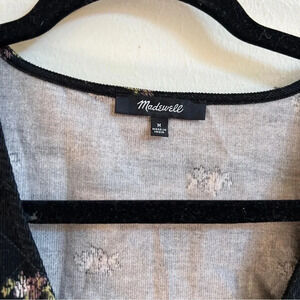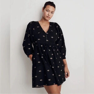 Womens Black Madewell Corduroy Quilted-Bib Mini Dress in Blurred Ikat Item NI714