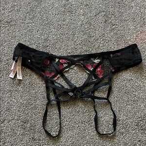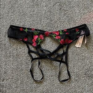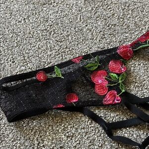 VS Black Lace Garter Belt with Red Cherry Embroidery