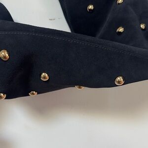 Super dark blue. Gold studs.