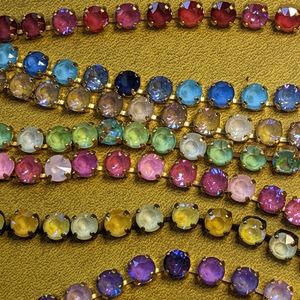 The base necklace is Made in Israel. It has 33 crystals and measures 8mm. It is 17 to 18 inches long and can be shortened to a collar.
