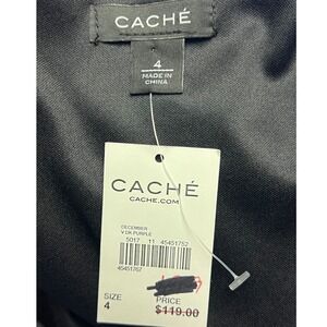 Cache Mini Dress Shiny Dark Purple Ruched V Neck Party Glam Shimmer Chic Size 4