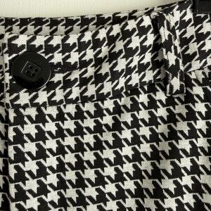 New without tags Cabi black and white houndstooth wide-leg trousers in size 0. These polished statement pants feature a flattering high-rise waist, functional pockets, and belt loops so you can easily style them with your favorite belt. The classic houndstooth pattern and tailored silhouette make them perfect for workwear, business casual outfits, or elevated everyday style. Pair with a fitted top, blazer, or heels for a sophisticated look.