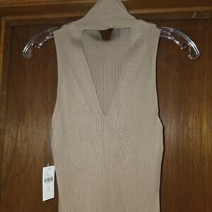 NWT Anthropologie small mock neck midi, bodycon cedar tan dress sz XS
