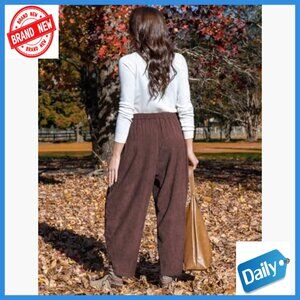 Corduroy Harem Pants Elastic Waist Wide Leg Loose Fit Casual Trousers