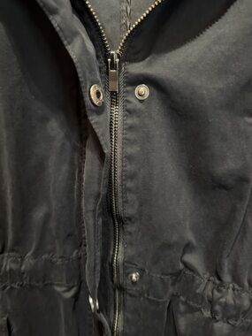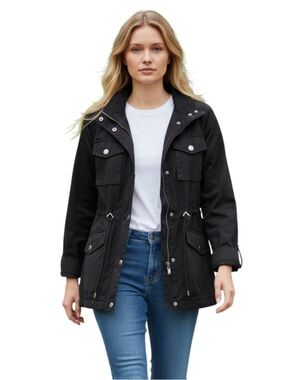 Chic dark utility jacket. Includes multiple pockets. Ideal for everyday style.