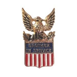 Keywords: Military Memorabilia, Homefront, Patriotic, Americana, Vintage Sterling, Collectible Pin, Wartime, Army, Navy, Air Force, Marine Corps, Gold Over Silver, Enamelware, Historical Jewelry
