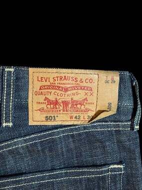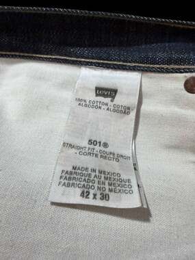Brand new with tags — never worn. Classic Levi’s 501 straight-fit button fly in a rich dark indigo rinse. Made in Mexico (c. 2011), 100% cotton shrink-to-fit denim with iconic orange stitching, copper rivets, and the timeless red tab patch. Tagged W42x30; measures approx. 23” waist flat (46” total), 27” inseam. Perfect as an oversized/boyfriend style for women or true-to-size for men. A wardrobe staple that only gets better with wear.