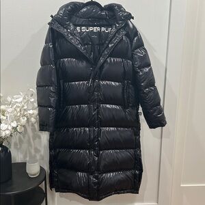 Aritzia The Super Puff Long Black Puffer Coat Gloss