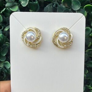 Elegant Gold and Pearl Stud Earrings